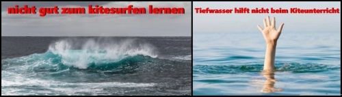 So wichtig wie die richtige Windstärke für deinen Kite-unterricht ist die Wahl des richtigen Kitespots. Eine wellige Stelle und / oder tiefes Wasser wird die Dinge kompliziert sehr viel, da es fast unmöglich ist, die Drachen zu steuern, wenn Wellen gegen Sie Absturz, und tiefes Wasser werden Sie die Kontrolle über die Drachen verlieren, wie Sie kein Gleichgewicht haben. Gefahren beim Kitesurfen