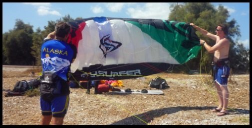 Als nächstes mit einem größeren Kite, mit dem Sie Kitesurfen beginnen kann …. bis Sie die Technik beherrschen zu dem Wasserstart.