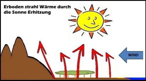 AUSWIRKUNGEN AUF DEN WIND. Strahlung von der Sonne verursacht viel hitze